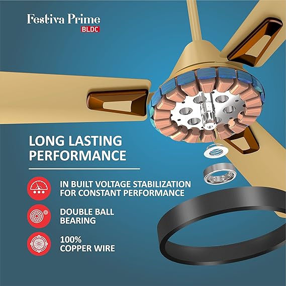 Havells 1200Mm Festiva Prime Bldc Motor Ceiling Fan|5 Stars Cf With Rf Remote