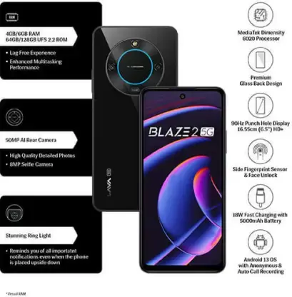 LAVA Blaze 2 5G with (Glass Black, 128 GB) (6 GB RAM)